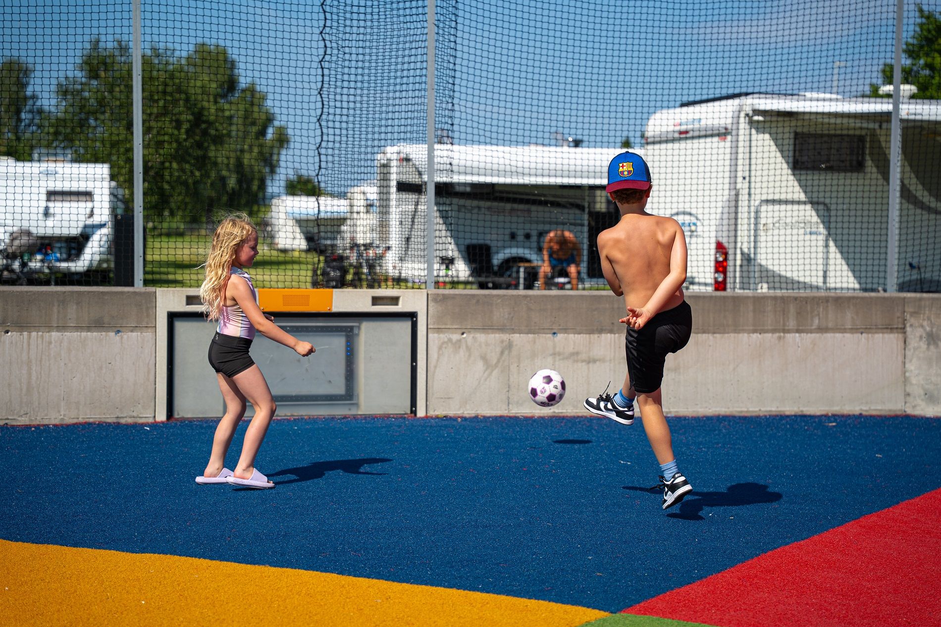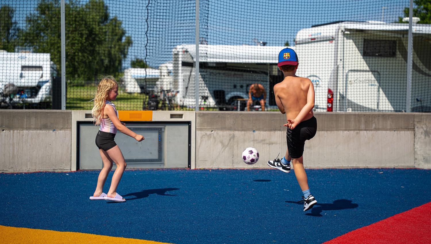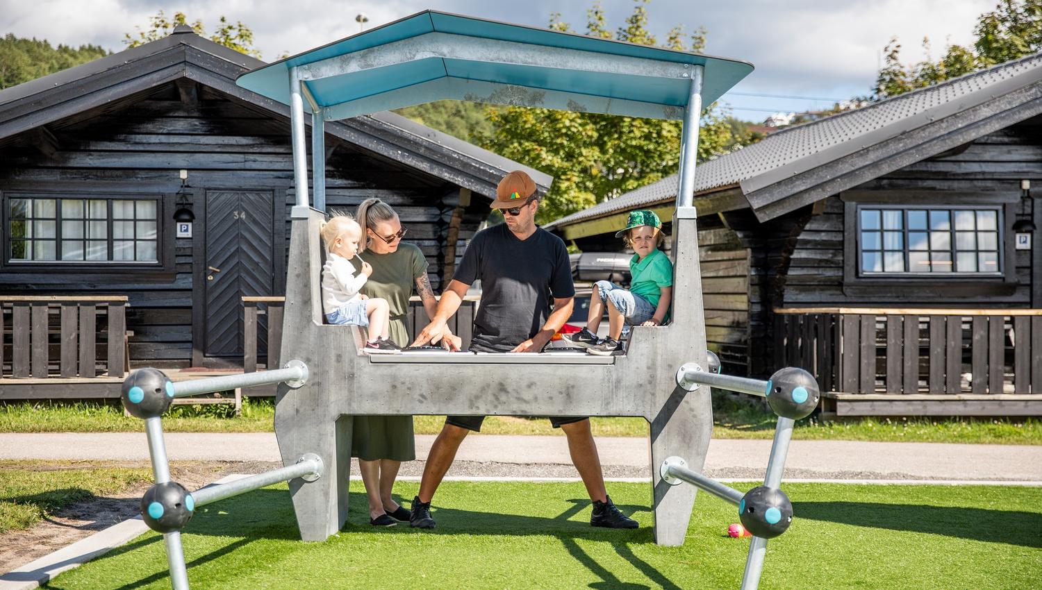 Selve hjertet av campingen er lekeplassen med interaktive leker for alle aldre. Her kan man vise frem danseferdighetene sine, prøve seg som DJ for en dag, eller delta i spennende konkurranser i fotballbingen. Barna vil kunne utforske, leke og ha det gøy i time etter time, mens du tar en velfortjent pause og nyter de vakre omgivelsene. Om ikke du vil leke med da!