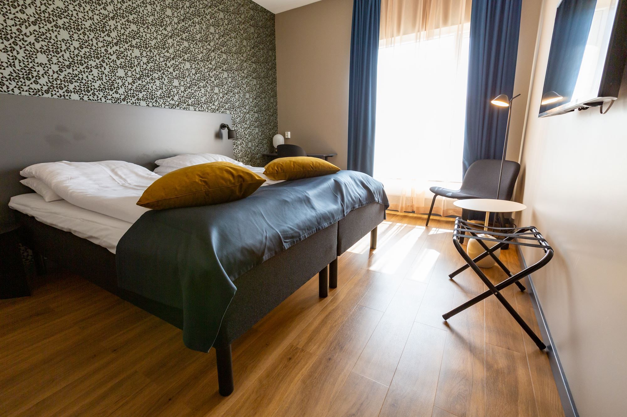 Vårt hotell sto ferdig bygd og klar til sommeren 2019. Alt av fasiliteter er topp moderne og helt nytt. I tilknytning til hotellet serveres det frokost hver morgen, i tillegg til en ala carte meny utover dagen og kvelden. Videre tilbyr vi flere typer overnatting, fra dobbeltrom på brygge til rorbuer og leiligheter av ulike størrelser. Alle våre rorbuer har sjøutsikt, uansett om du booker deg inn på vår lille og koselige rorbu egnet for to personer, eller ønsker å bo mer eksklusivt i vår Suite Deluxe. Totalt har vi over 150 sengeplasser på hele anlegget.